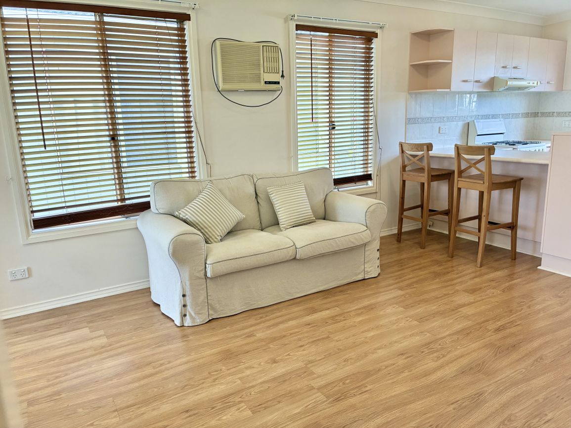 The home has an open plan design featuring dining, living and kitchen. The kitchen with gas appliances and living area has air conditioning. Both bedrooms have built in mirrored robes. There is a separate toilet from the bathroom and laundry which has rear entry access to the home. There is a courtyard at the rear of the home with a clothesline and a garden shed. There is no provision for a car.